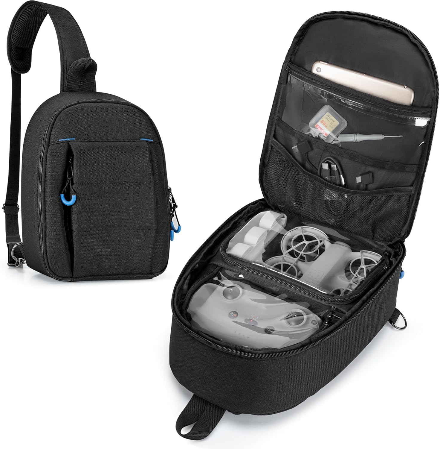 - Customized Design: Inner 2 large transparent pockets are compatible with DJI Neo* drone, RC-N3 remote controller, 3 x intelligent flight batteries and 1 charging hub separately; Double zipper and U-opening for quick access; Our product is unrelated to brand mentioned